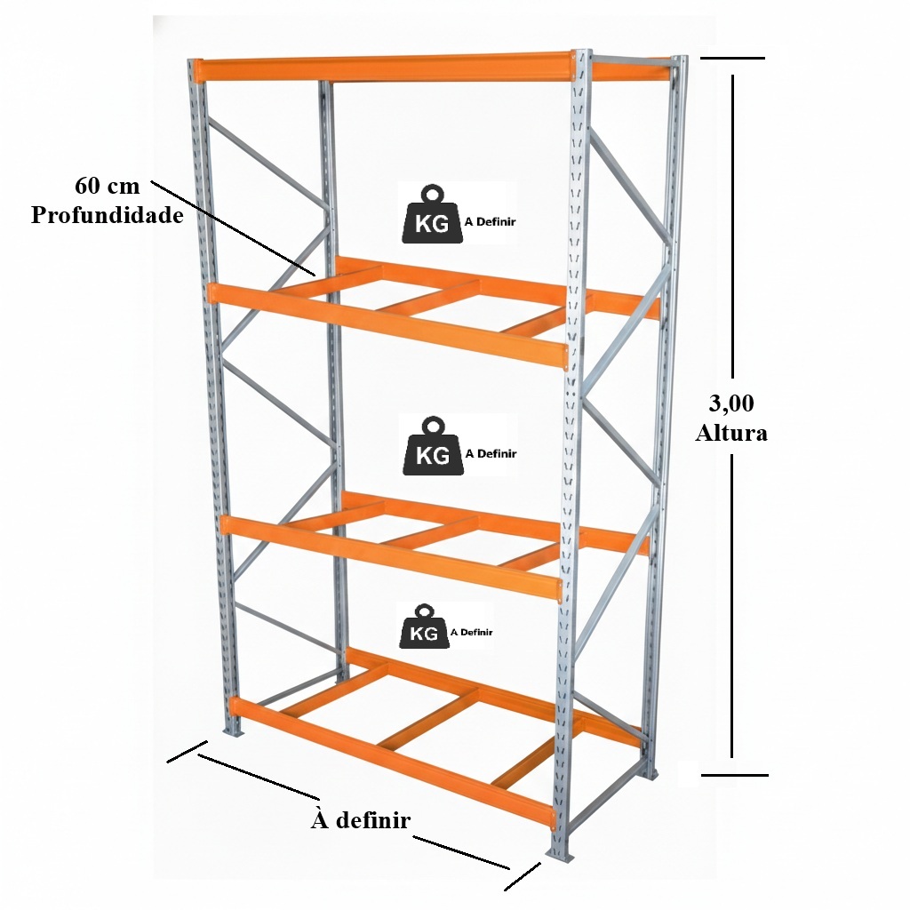 Mini Porta Pallet 300kg ou 500Kg (A escolha) INICIAL 3,00m ALTURA x Largura 1,80m ou 1,20(Interna, A escolha) x 60cm
