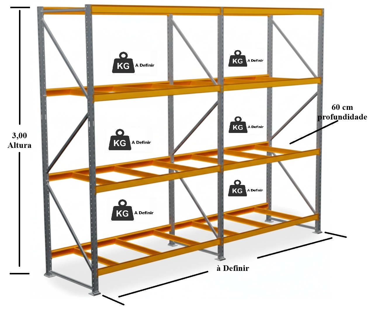 Mini Porta Pallet 300kg ou 500Kg (A escolha) INICIAL 3,00m ALTURA x Largura 1,80m ou 1,20(Interna, A escolha) x 60cm
