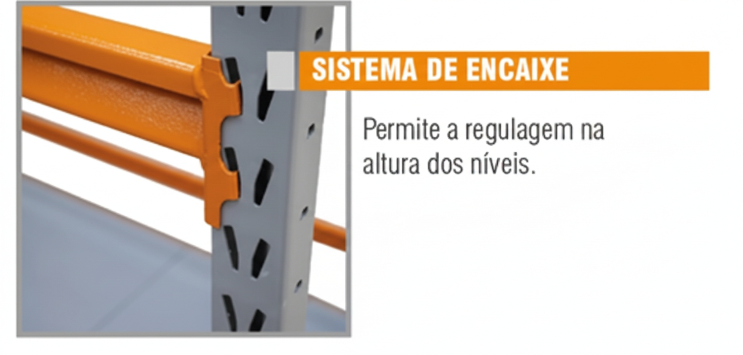 Prático e versátil dispensa o uso de empilhadeiras, onde as mercadorias são depositadas e retiradas manualmente. Além disso, é de fácil montagem, com a simples colocação de porcas e parafusos, unindo as longarinas às colunas. A pintura dos produtos é feita por meio da técnica eletrostática, com tratamento anticorrosão uniforme e resistente.